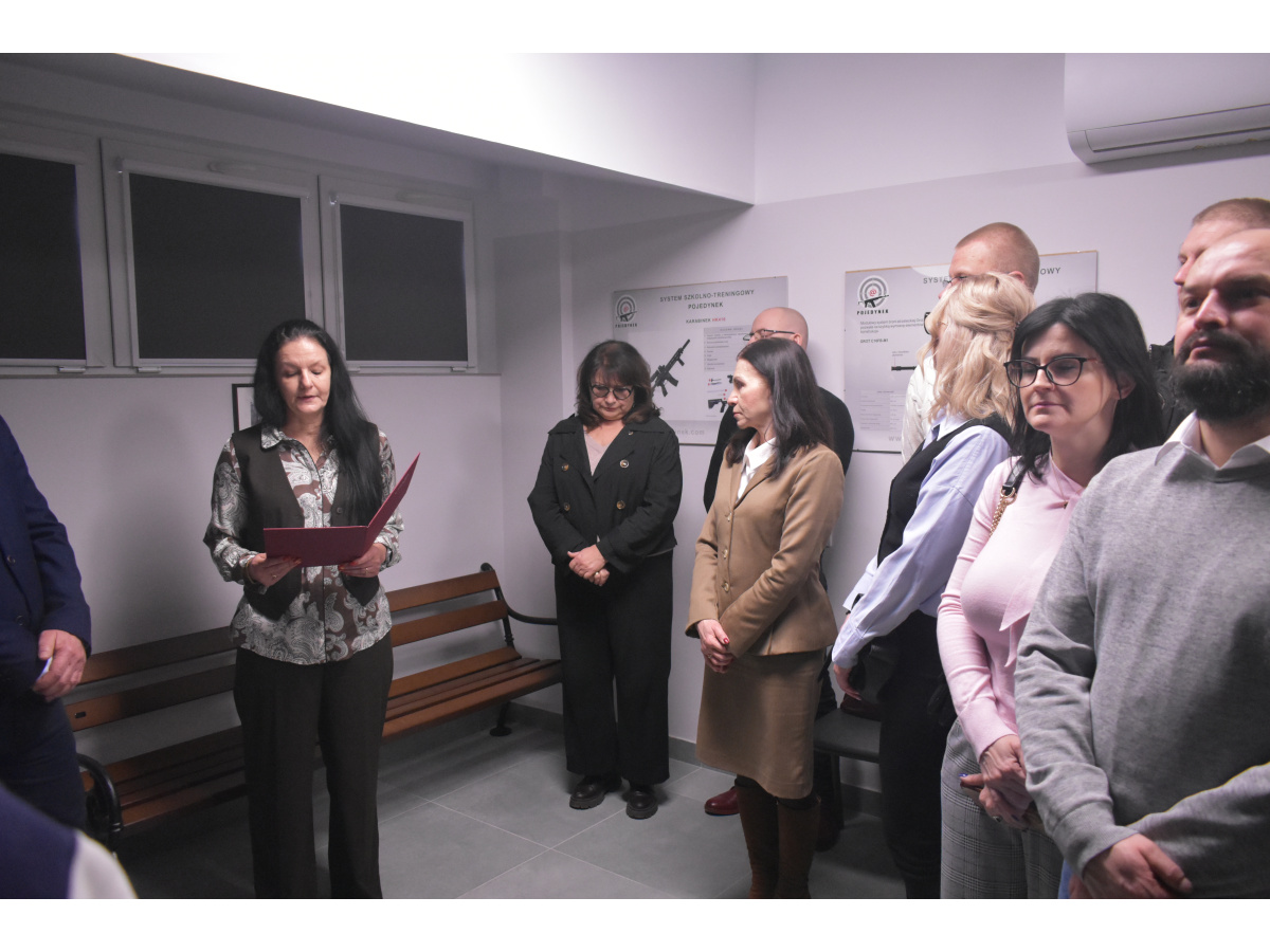 Kolejnym punktem programu było oficjalne otwarcie nowo utworzonej strzelnicy wirtualnej. To ważna inwestycja, która wzbogaca bazę dydaktyczną szkoły i umożliwia kadetom doskonalenie umiejętności strzeleckich w nowoczesnych, bezpiecznych warunkach.