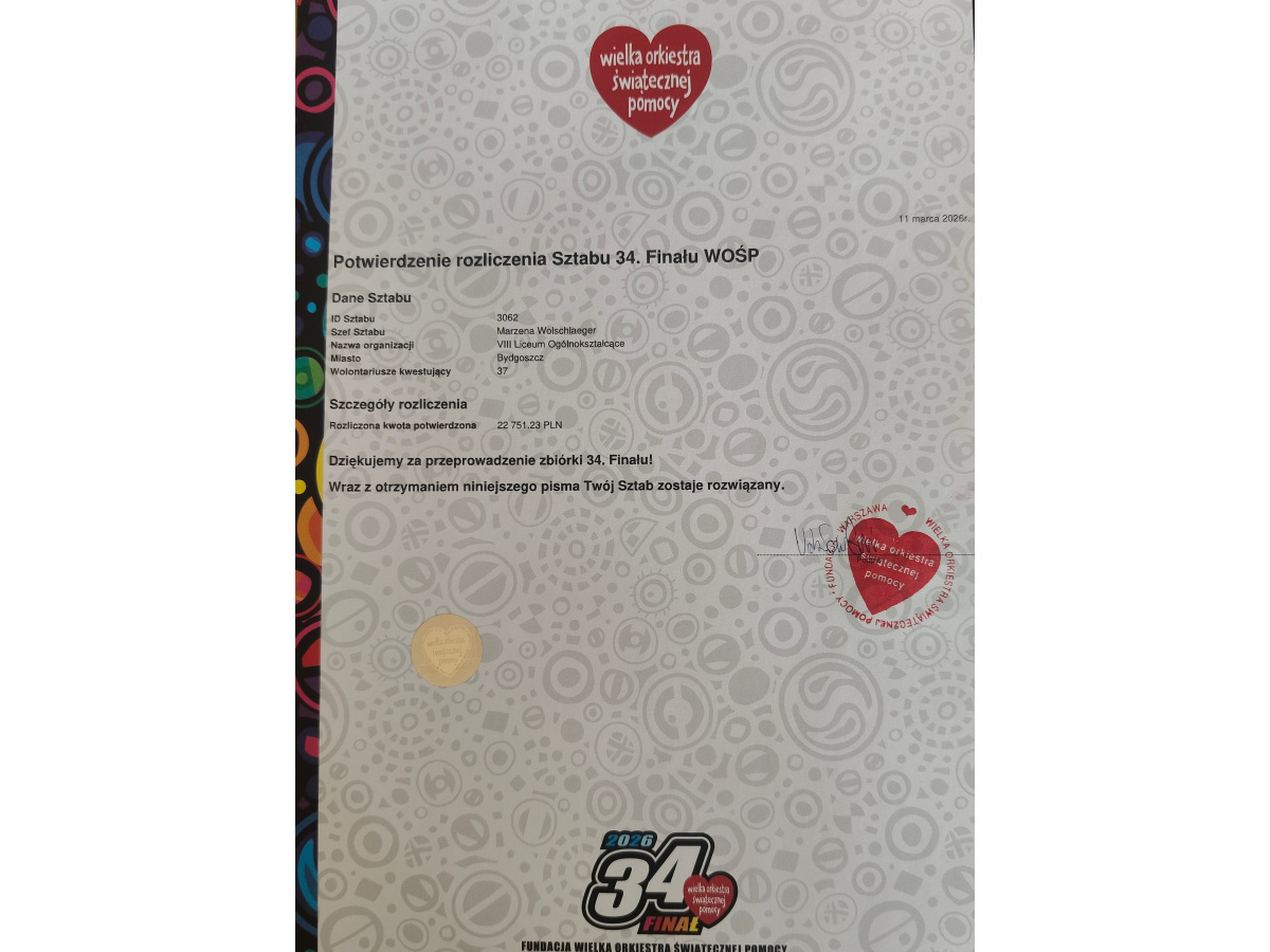Światu ogłaszamy, że nasze Ósemkowe granie zostało rozliczone. Sprawozdanie zaakceptowane.