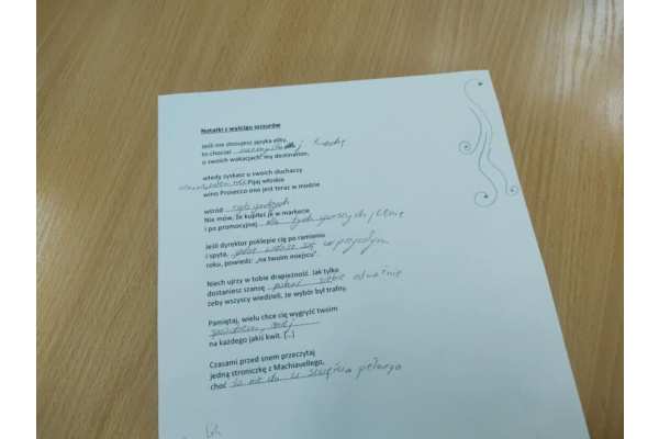 Gościem szkoły był Bartłomiej Siwiec – poeta, prozaik oraz prezes Stowarzyszenia Pisarzy Polskich Oddziału Bydgoszcz, nominowany w 2022 roku do tytułu „Poeta KOSa” za tom poetycki Domysły na temat Ruxa. Spotkanie poprowadziły Alicja Dużyk i Alicja Posłuszna z Pracowni Literatury Kujawsko-Pomorskiego Centrum Kultury.