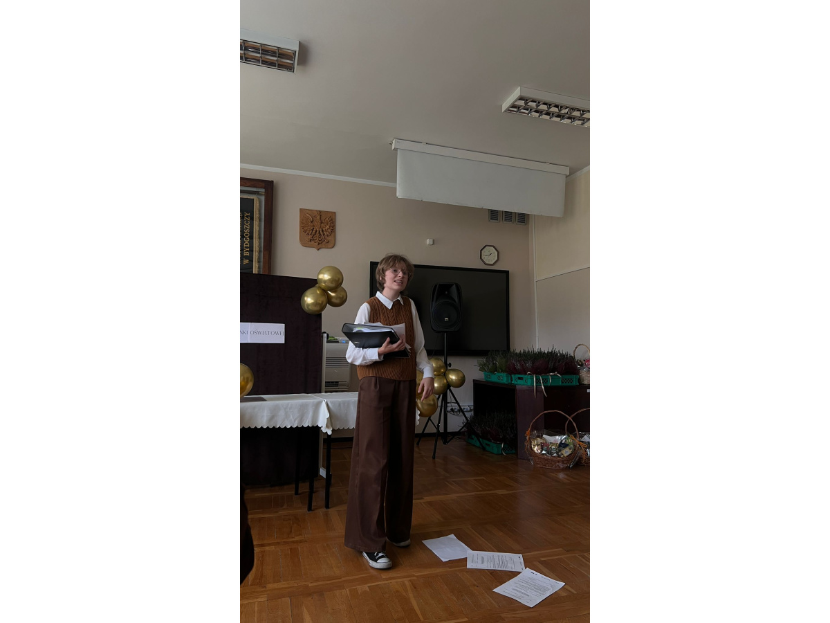 Nie zabrakło także wyjątkowego momentu przygotowanego przez uczniów – Samorząd Uczniowski wręczył nauczycielom symboliczne wyróżnienia jako wyraz wdzięczności i sympatii.