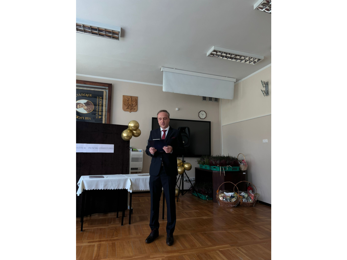 Na początku spotkania powitaliśmy serdecznie Dyrekcję, grono pedagogiczne, przedstawicieli Rady Rodziców, przedstawiciela WCR kpt. Bartłomieja Budnika, a także całą społeczność uczniowską. Był to wyjątkowy moment, aby zatrzymać się na chwilę i złożyć podziękowania wszystkim, którzy każdego dnia wkładają serce, cierpliwość i ogrom pracy w wychowanie młodego pokolenia.
