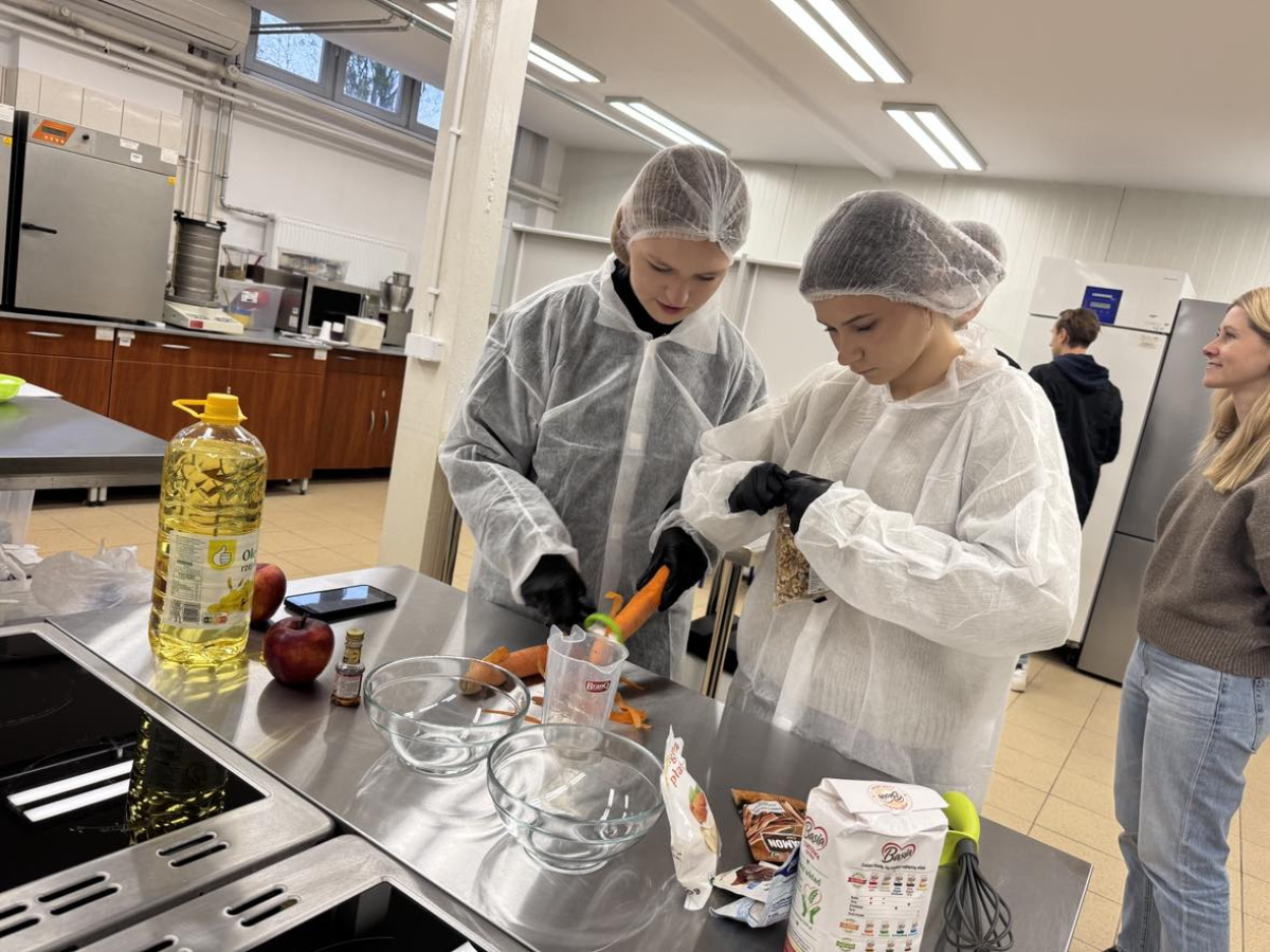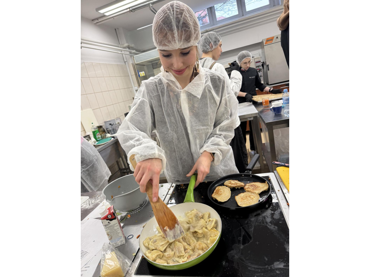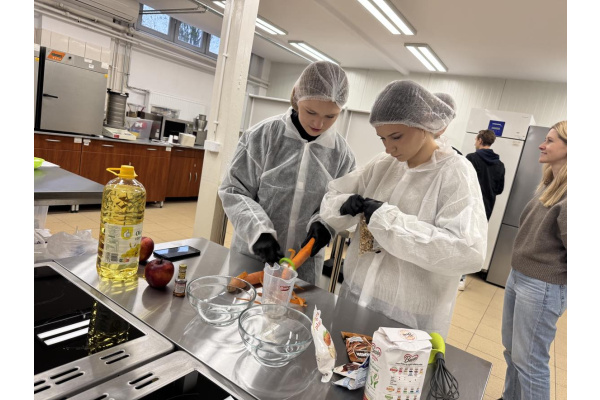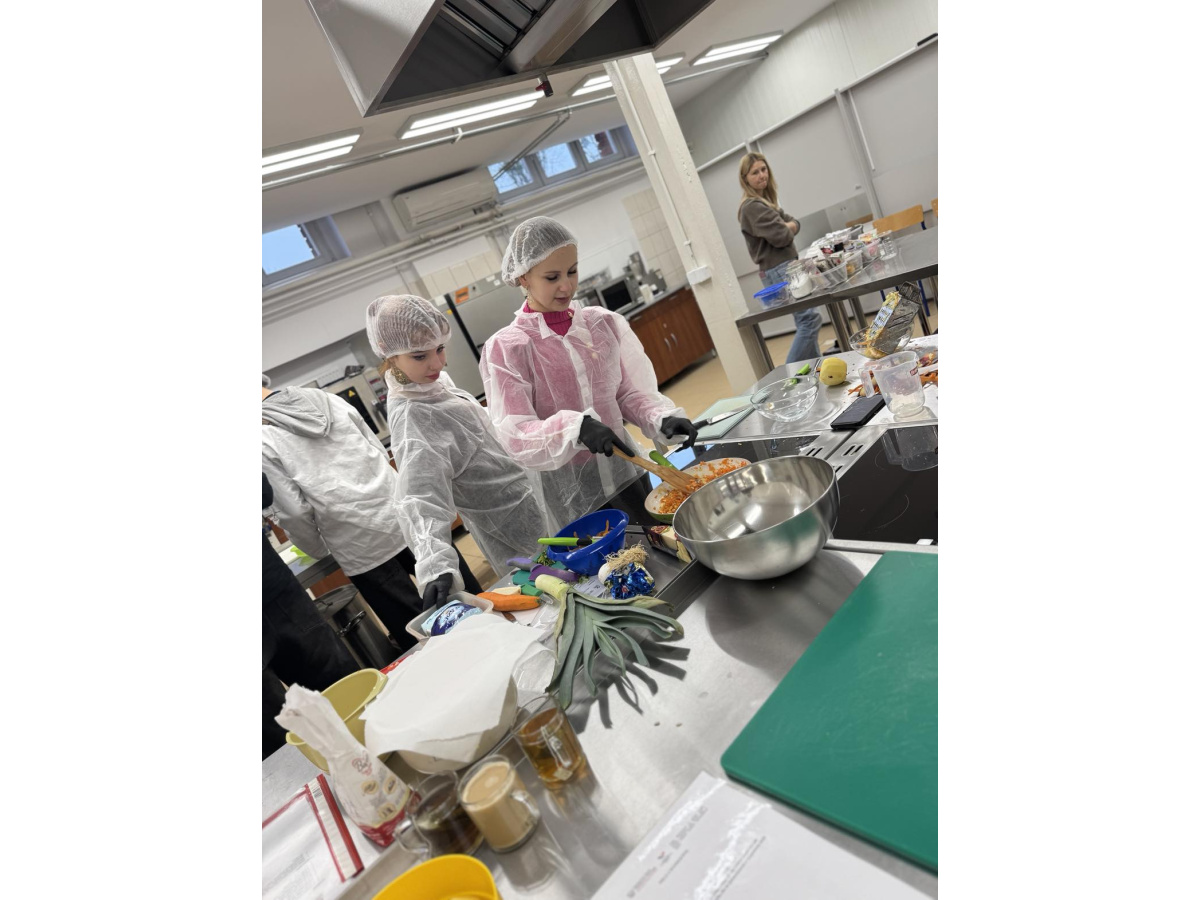 Uczniennice klas dietetyczny uczestniczyły w warsztatach zorganizowanych przez Wydział Technologii i Inżynierii Chemicznej PB w ramach projektu „Żywność na okrągło, czyli Zero Waste w i od kuchni" . Podczas zajęć mieli okazję przygotować różnorodne potrawy, a jednym z głównych tematów była kreatywna obróbka odpadów gastronomicznych. Okazało się, że podczas gotowania pozostało wiele resztek warzyw, ciasta czy produktów sypkich, z których wspólnie stworzyliśmy m.in. chipsy, krokiety, pierogi i wiele innych smacznych przekąsek. Uczniowie z zaangażowaniem podjęli kulinarne wyzwania, a atmosfera pełna współpracy i entuzjazmu sprawiła, że warsztaty były nie tylko pouczające, ale i niezwykle przyjemne.