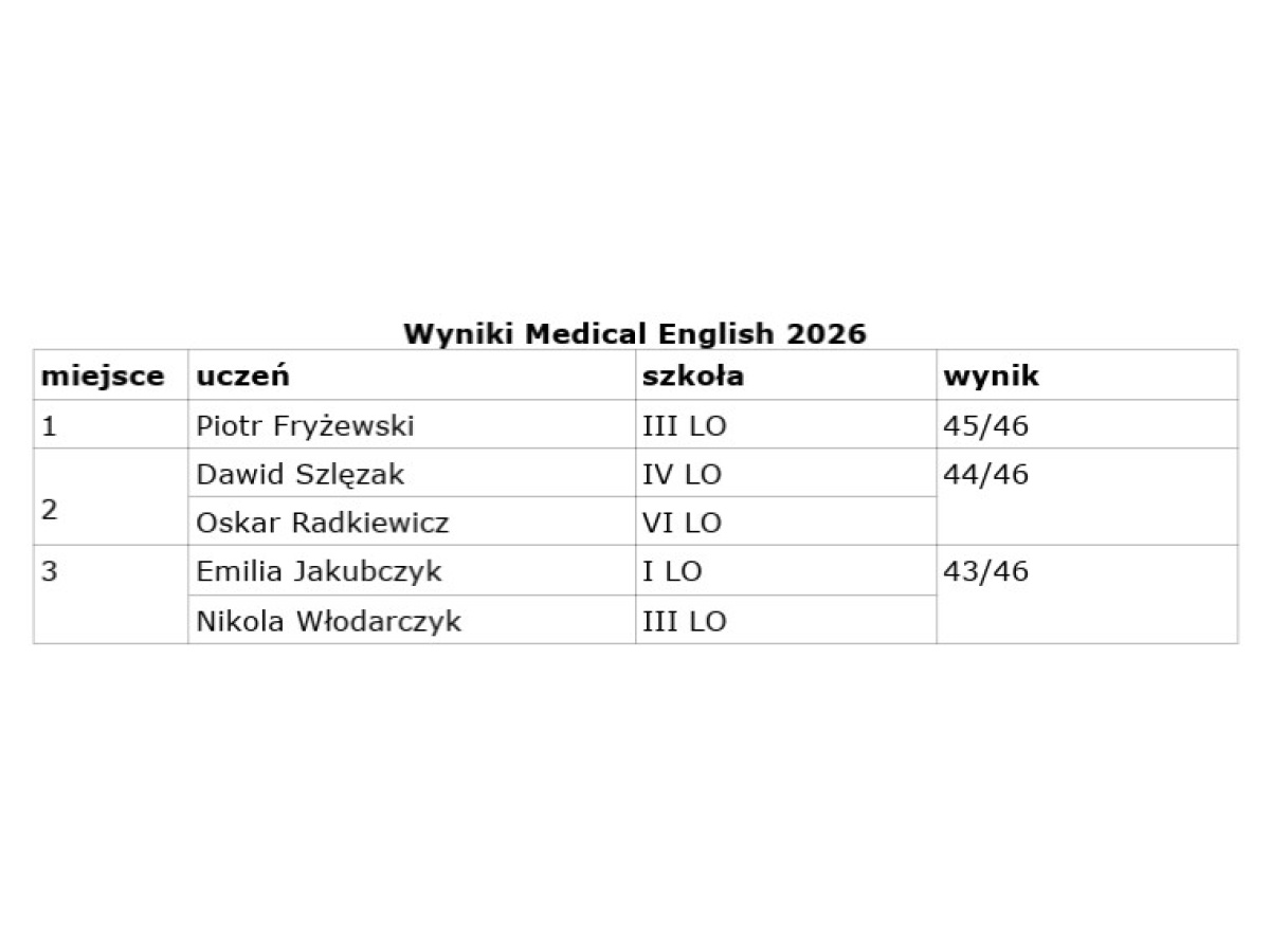 Wszystkim uczestnikom dziękujemy za udział w konkursie, a laureatom gratulujemy tak imponującej wiedzy z zakresu języka angielskiego medycznego!