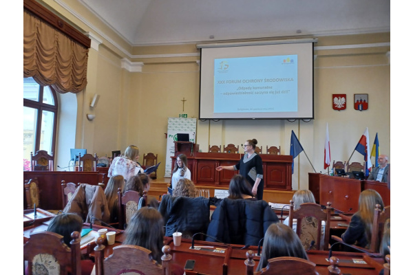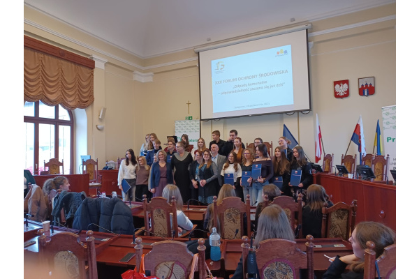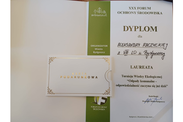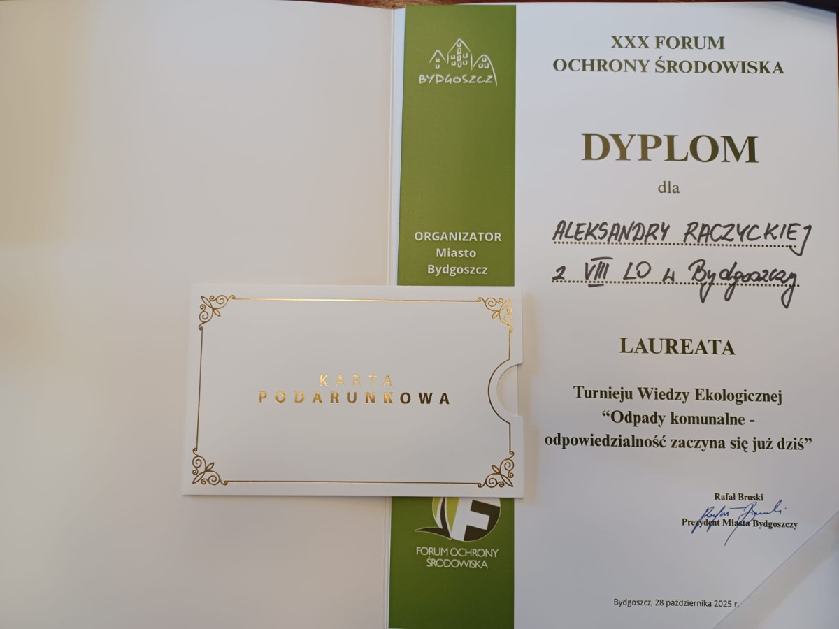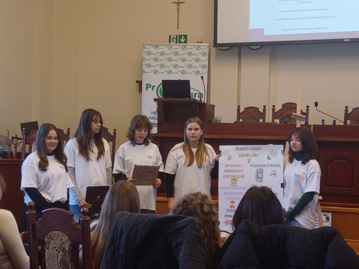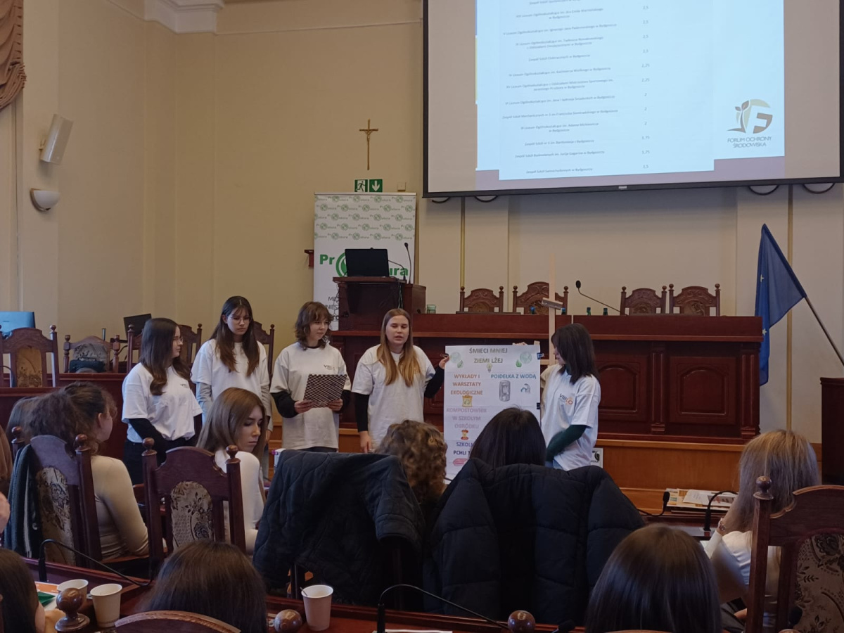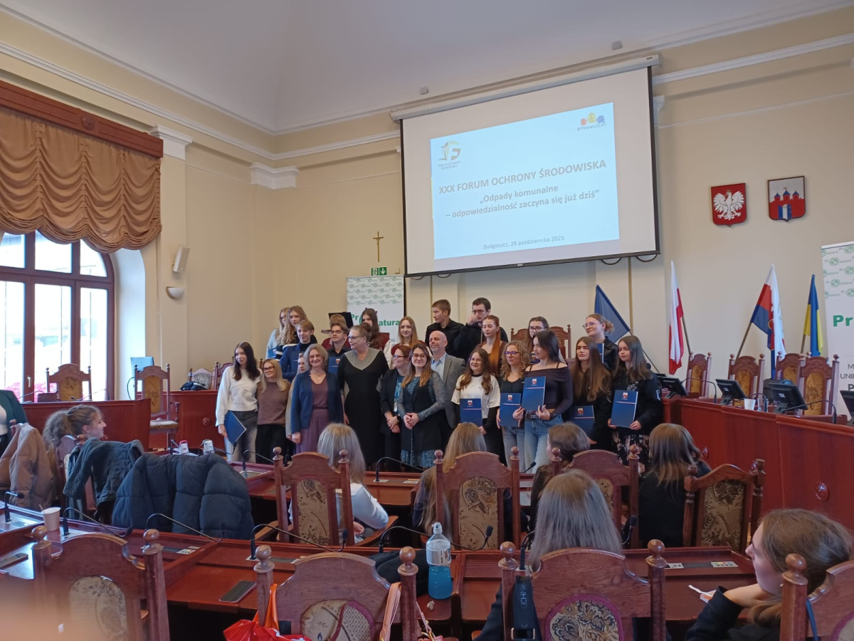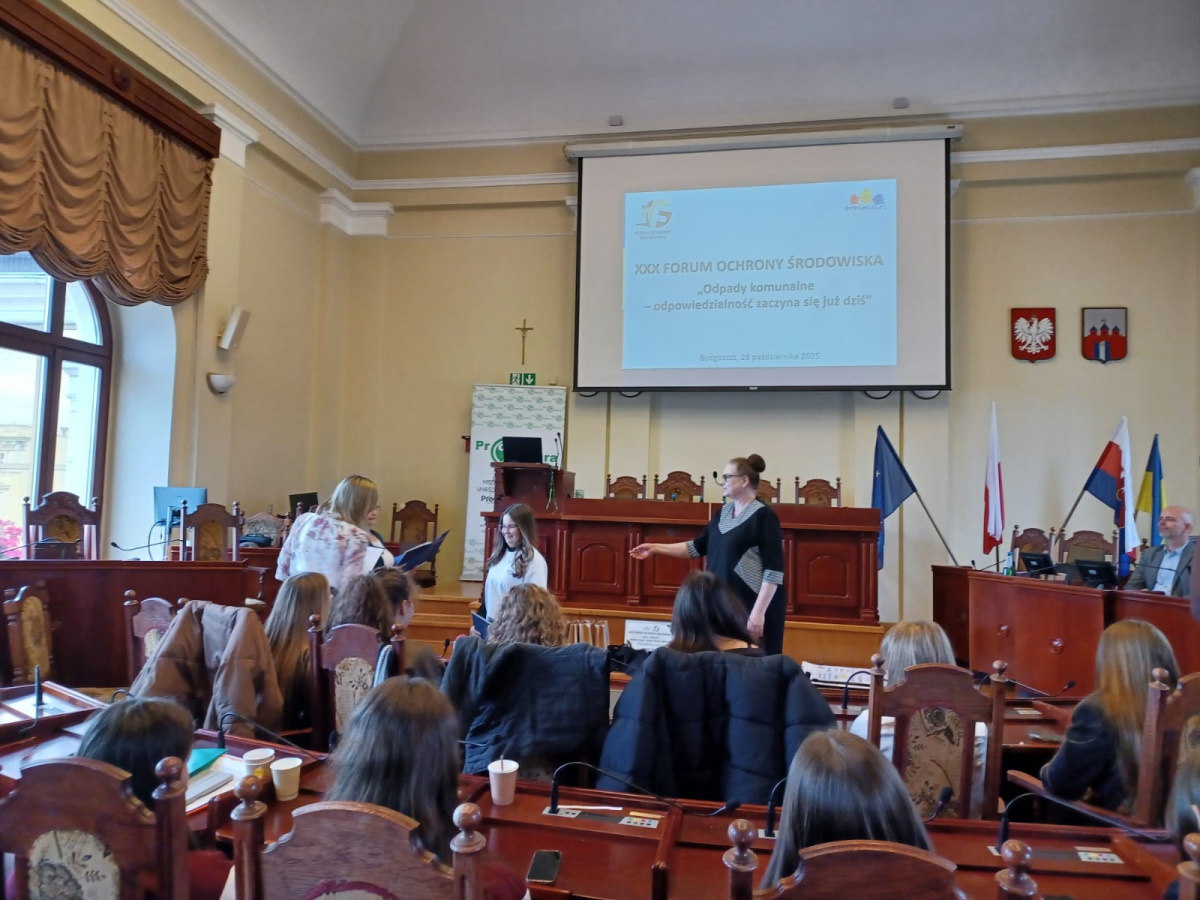 28 października 2025 r. w Ratuszu odbyło się XXX Forum Ochrony Środowiska pt. „Odpady komunalne – odpowiedzialność zaczyna się już dziś”. Naszą szkołę reprezentowały uczennice klasy 2b: Zuzanna Ziemińska, Natalia Lewandowska, Zofia Baranowska, Aleksandra Raczycka i Antonina Szymczyk, pod opieką prof. Justyny Baranowskiej. Młode ekologiczki aktywnie uczestniczyły w dyskusjach i poznawały nowe sposoby na odpowiedzialne gospodarowanie odpadami.