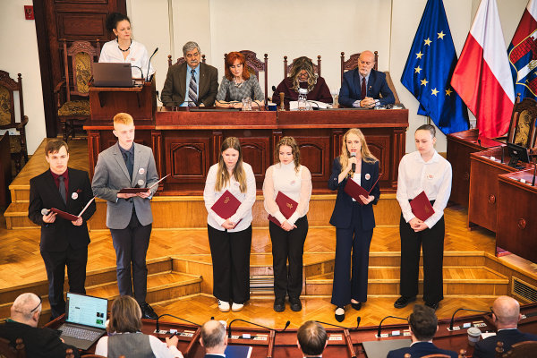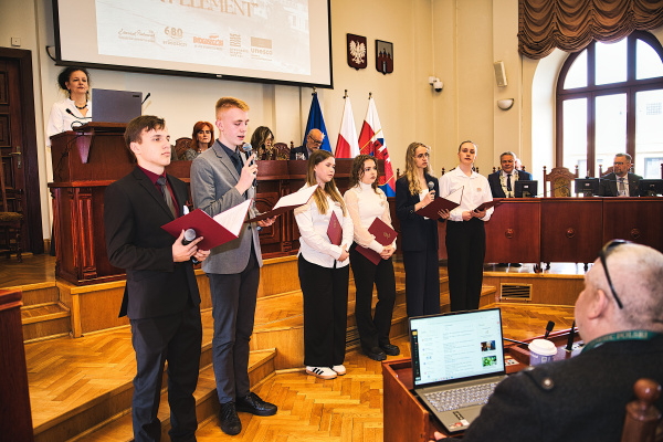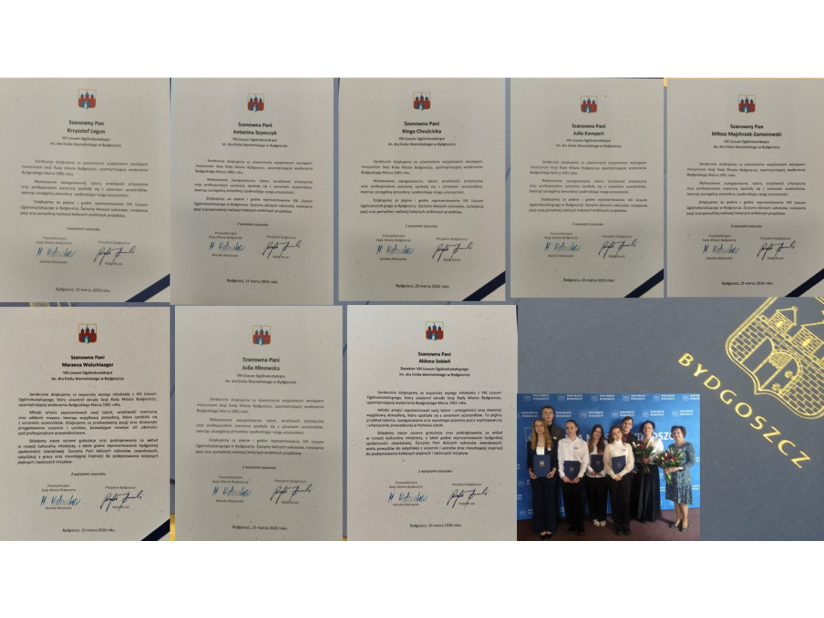 W 25 marca 2026 r. uczniowie z Grupy Teatralnej „Ósmy Element” mieli wyjątkową okazję wystąpić podczas sesji Rady Miasta Bydgoszczy, prezentując poruszający program poświęcony historii „Solidarności” oraz „Wydarzeniom bydgoskim” z marca 1981 roku.