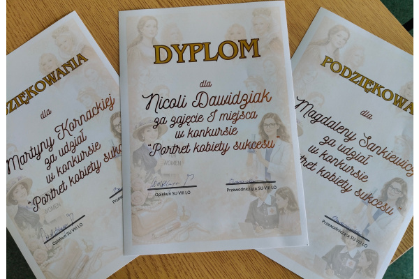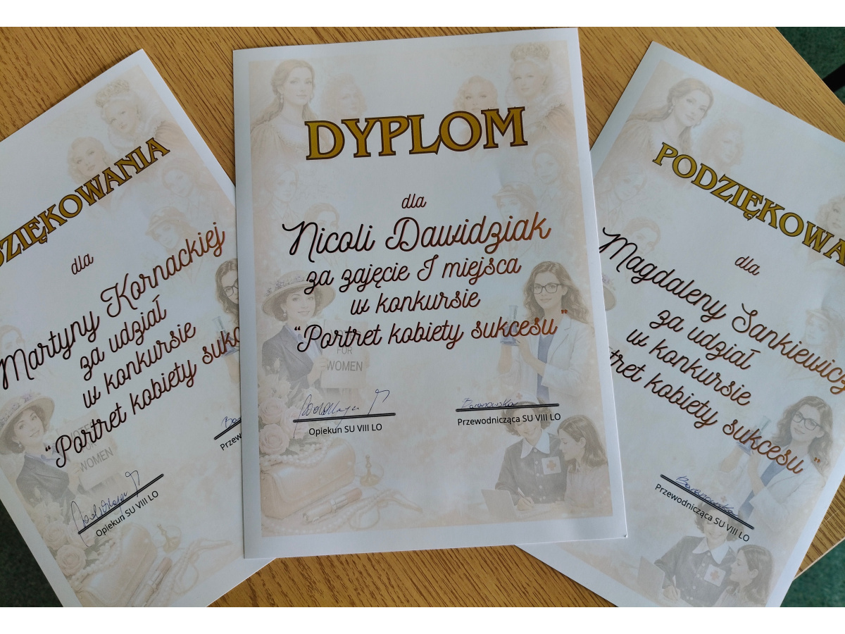 Samorząd Uczniowski ogłosił konkurs pt. „Portret kobiety sukcesu”, którego celem było ukazanie inspirujących sylwetek kobiet oraz ich osiągnięć, determinacji i siły charakteru. Uczestnicy wykazali się kreatywnością, wrażliwością artystyczną oraz umiejętnością trafnego przedstawienia idei sukcesu.