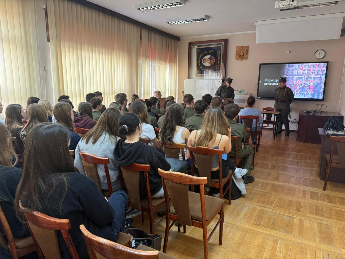 W auli VIII LO przedstawiono także dzieje tego powstania. Filip Stec z I w wraz z Adamem Lipińskim (z zaprzyjaźnionego technikum) przedstawili je w przystępny i ciekawy sposób. Ukazali walkę powstańców, ale także ich bohaterstwo i zaangażowanie. Nie ograniczyli się do ogólnych informacji, ale szczegółowo pokazali starcia w naszym regionie: w okolicach Bydgoszczy, Inowrocławia, Żnina, Kcyni. Pokazali też umundurowanie oddziałów powstańczych, zwrócili uwagę na szczegóły oznakowania formacji wojskowych, sposoby pokazania stopni w tej armii. Ich prezentacja spotkała się z zainteresowaniem uczestników tego wydarzenia.