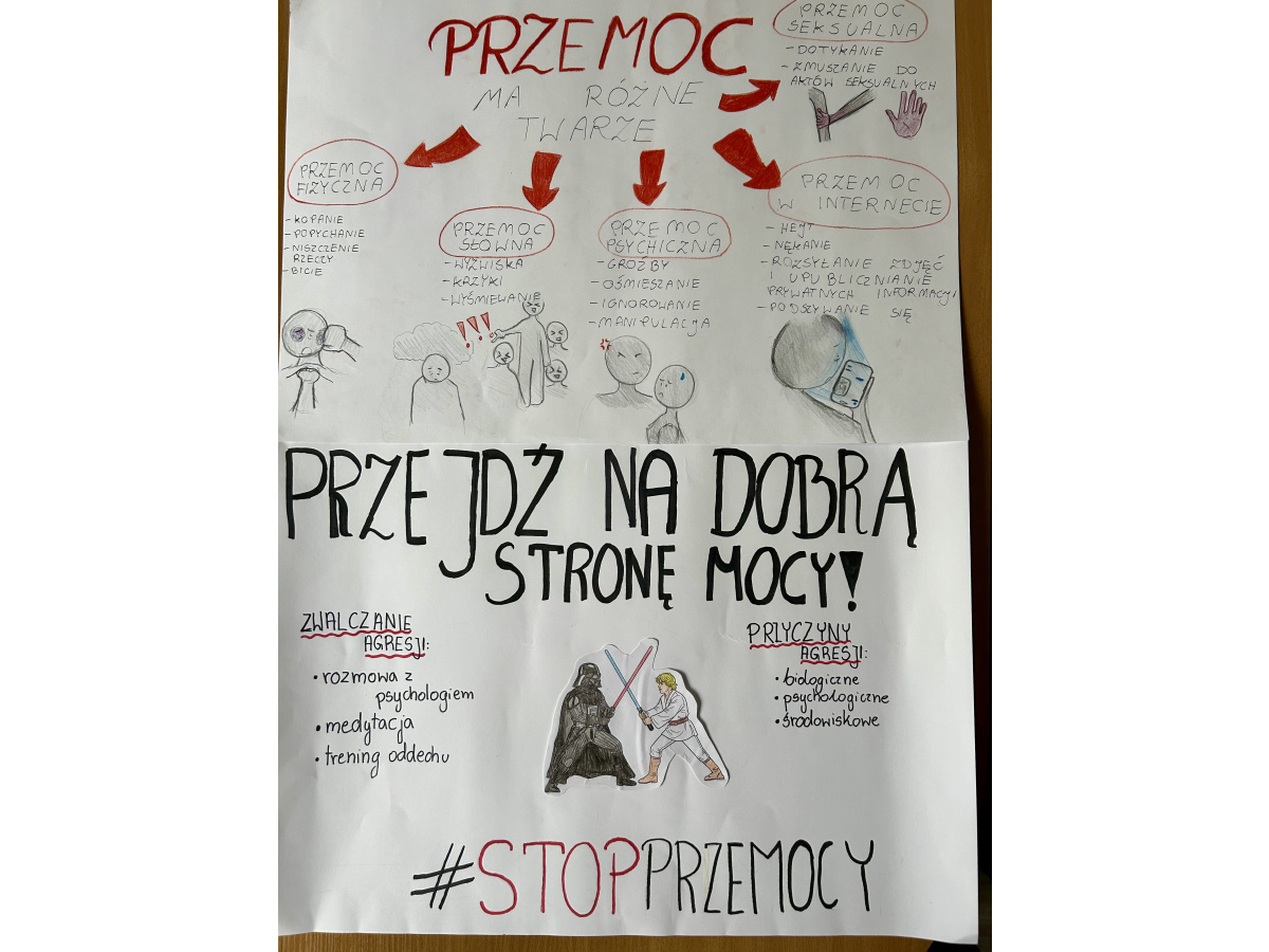 W tym czasie podczas warsztatów i pogadanek uczniowie mieli możliwość wymiany poglądów, doświadczeń i spostrzeżeń na temat przemocy rówieśniczej. Ważne było również uświadamianie młodzieży, jakie może przybierać formy, w jaki sposób rozpoznawać zachowania ofiary i sprawcy przemocy. Wskazywano, gdzie szukać pomocy, w jaki sposób na nią reagować i przede wszystkim skupiono się na kształtowaniu postaw empatii, tolerancji i odpowiedzialności.