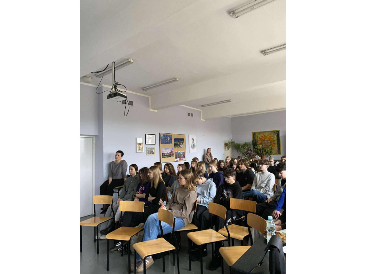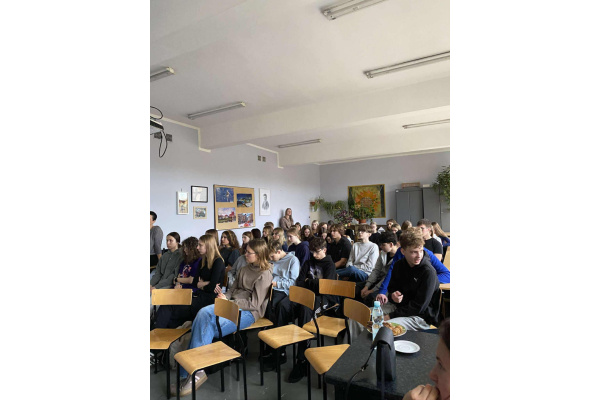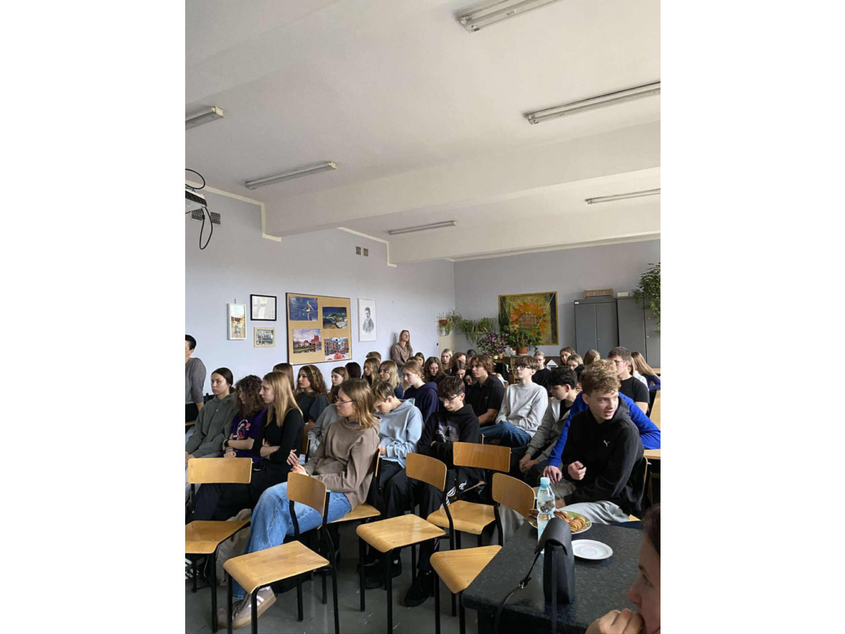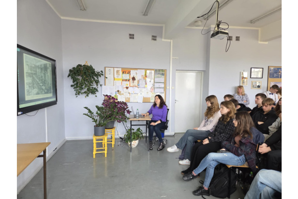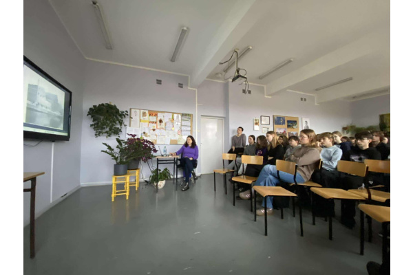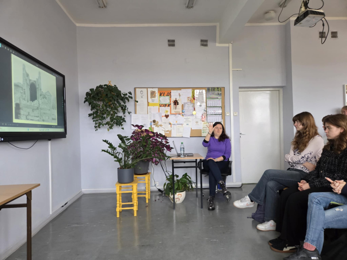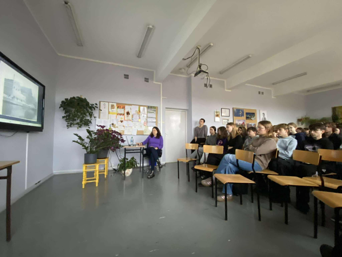 Pani Anna zabrała naszych uczniów w niezwykłą podróż w czasie – w świat dawnych pocztówek, fotografii i historii, które ożywiły wspomnienia o bydgoskich kamienicach i ich mieszkańcach.