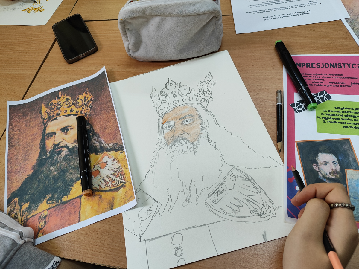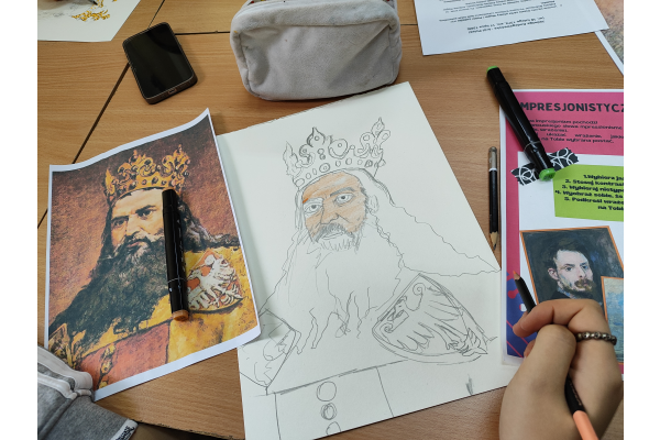 Zadaniem uczestników projektu było wykonanie portretu polskiego króla w określonym stylu artystycznym.