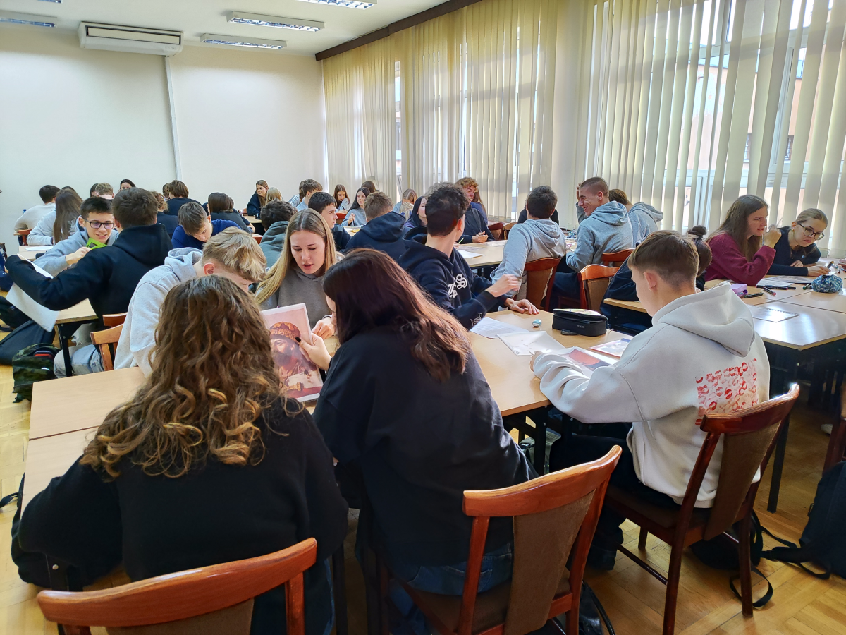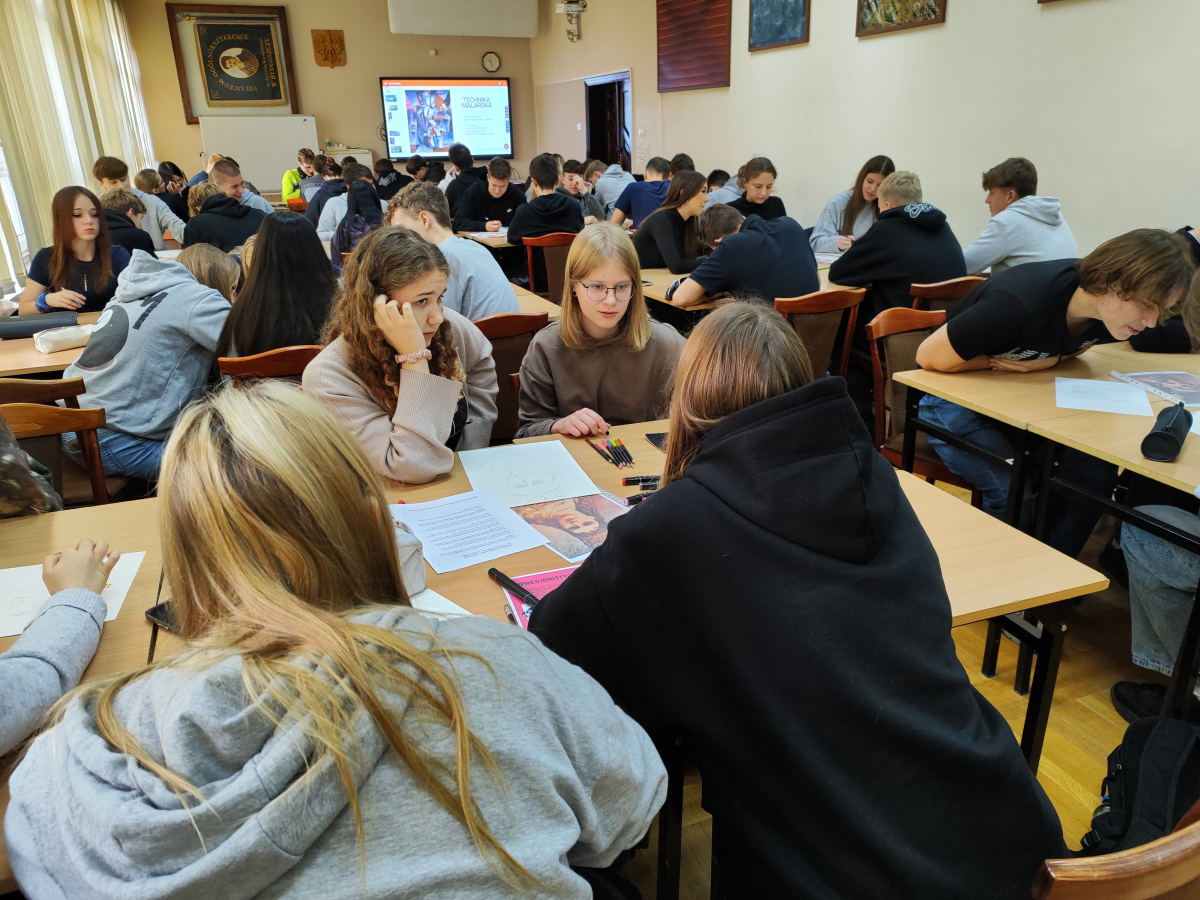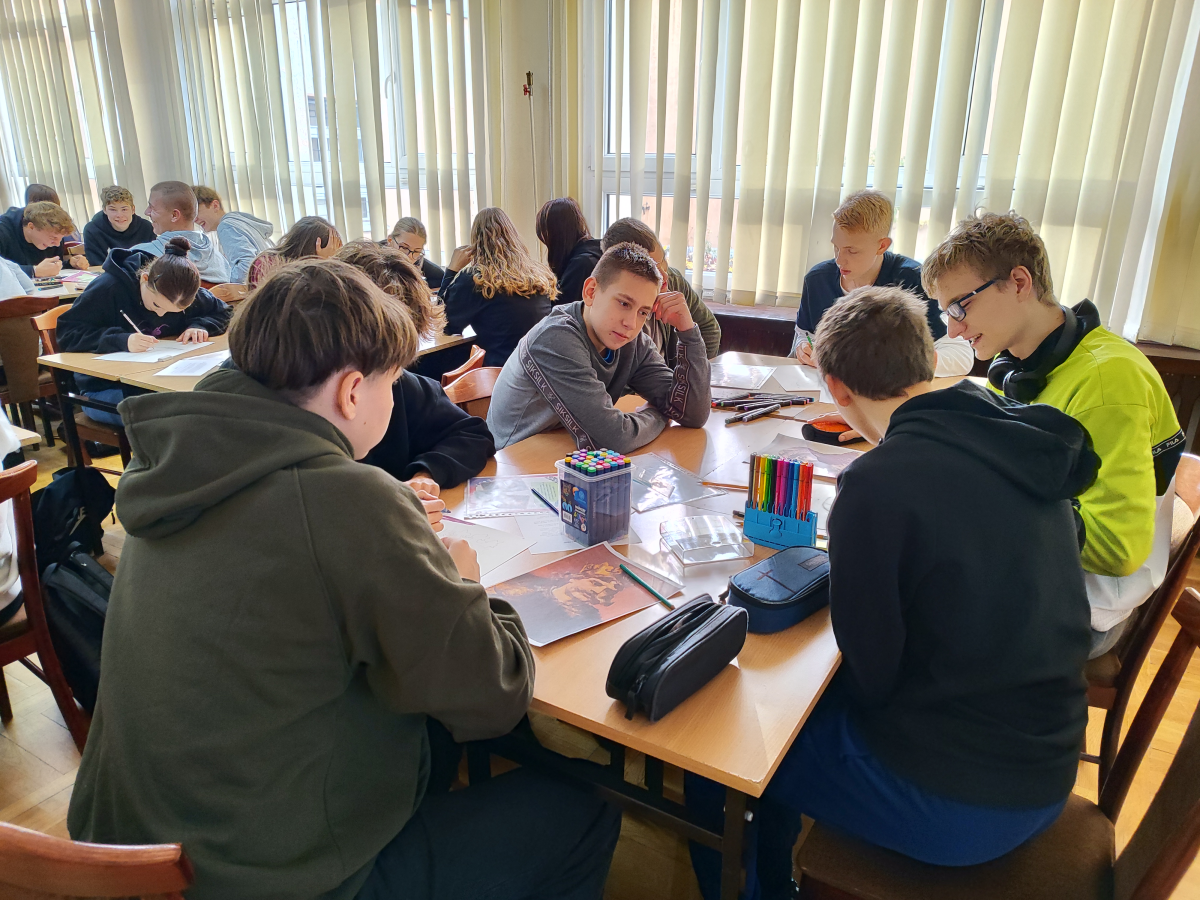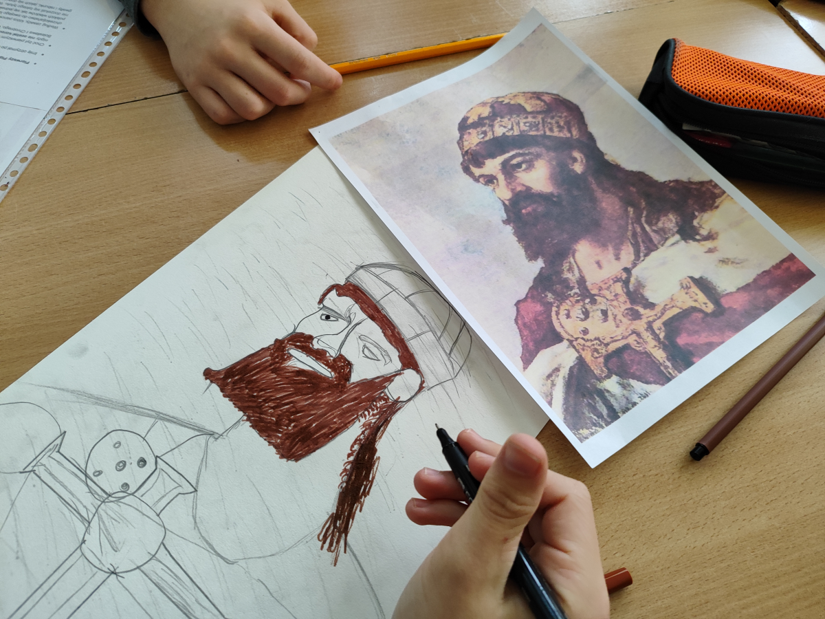 Dnia 12 listopada 2025 roku uczniowie klas 1w i 3b wzięli udział w warsztatach "Artystyczny portret władcy".