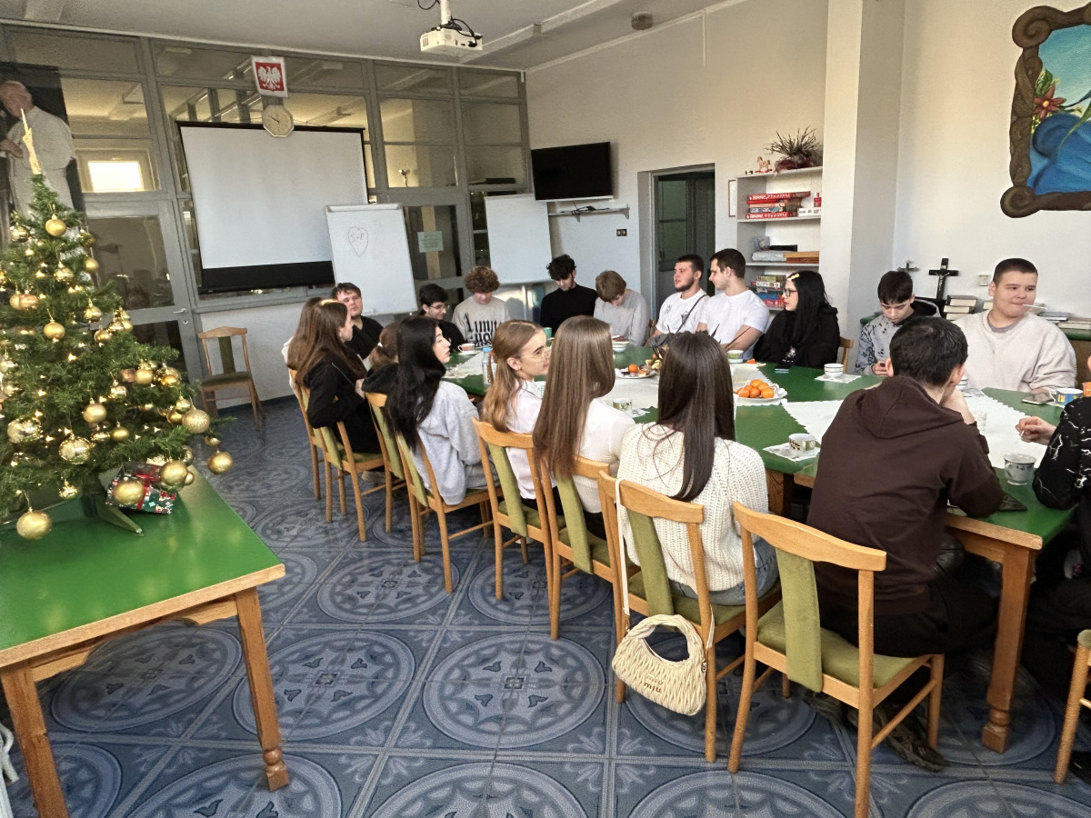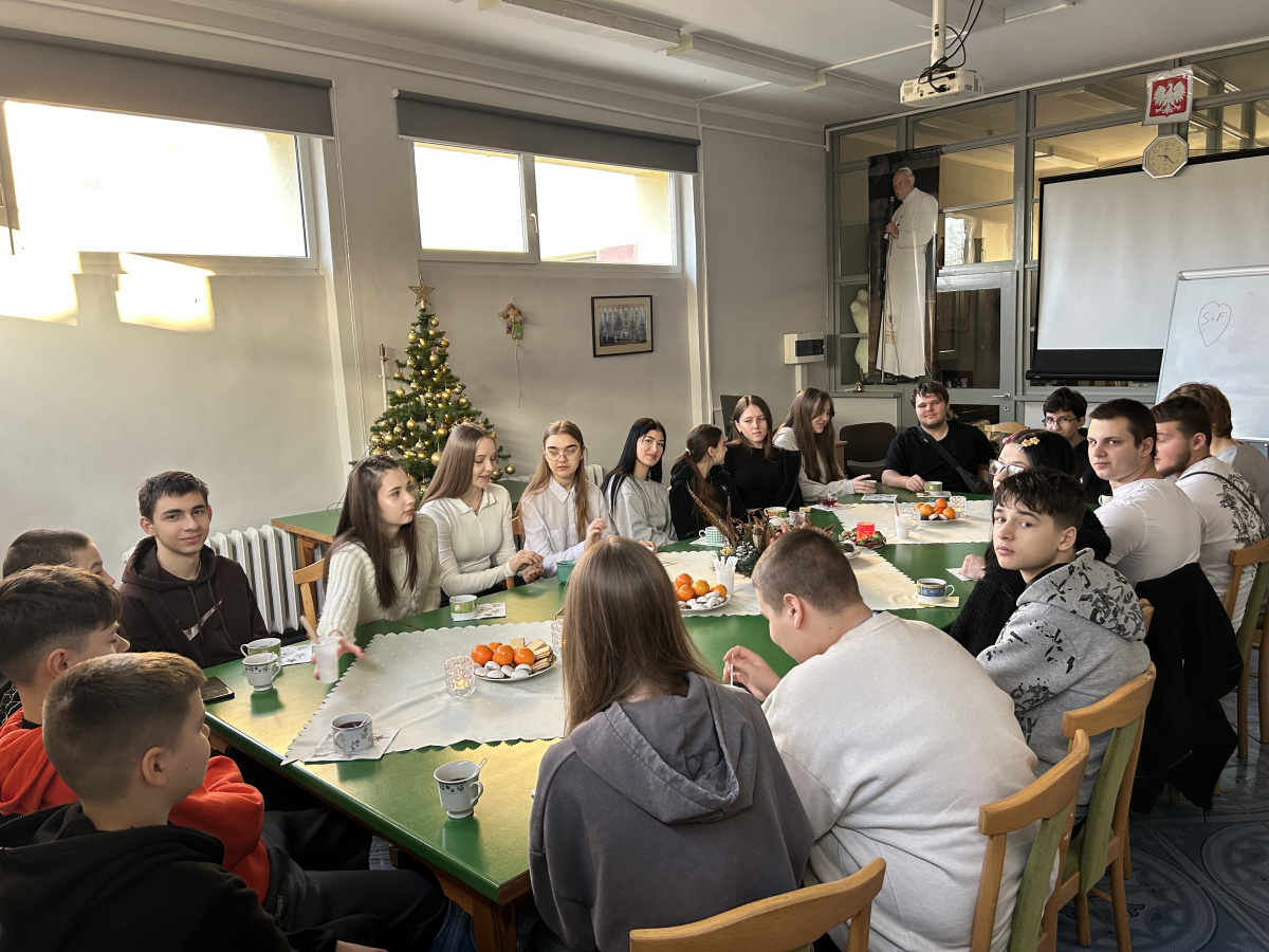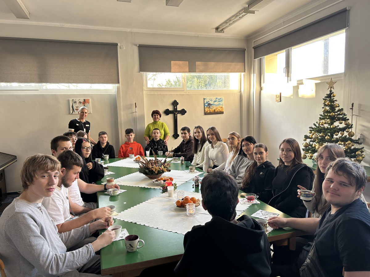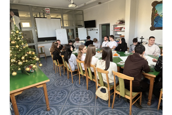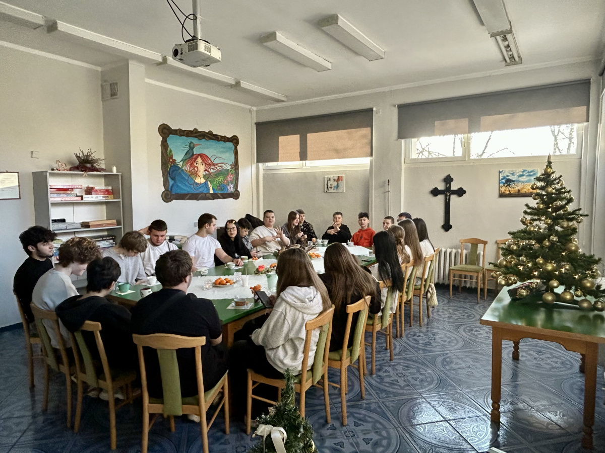Nasza młodzież z Ukrainy wraz z opiekunami, przy skromnym poczęstunku i świątecznej muzyce, zlożyła sobie nawzajem świąteczne i noworoczne życzenia.